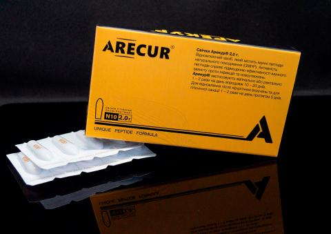 Свічки Арекур® містять біологічно активну речовину, яка складається з екзогенних регуляторних пептидів RJP-1 і defensin-1, що володіють протизапальними, антиінфекційними і протипухлинними властивостями. Екзогенні пептиди здатні підвищувати ефективність роботи імунних клітин слизових оболонок, сприяють знищенню патогенної і умовно-патогенної мікрофлори, в тому числі грибів роду Candida, вірусів герпесу і папіломавірусів. Свічки Арекур® сприяють зниженню інтенсивності запалення і надають профілактичну дію щодо виникнення ерозій і виразкових дефектів, на тлі яких можлива поява атипових клітин.